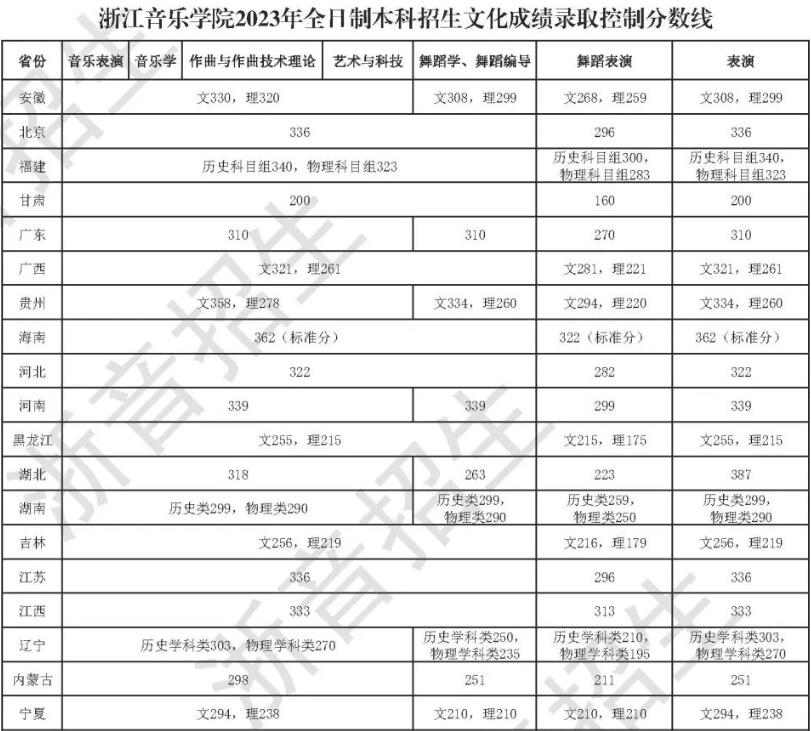 导读:2023年浙江音乐学院录取分数线 2023浙江音乐学院艺术类本科招生录取分数线已经公布了,其中,在北京舞蹈表演专业文化课录取分数线是296分,