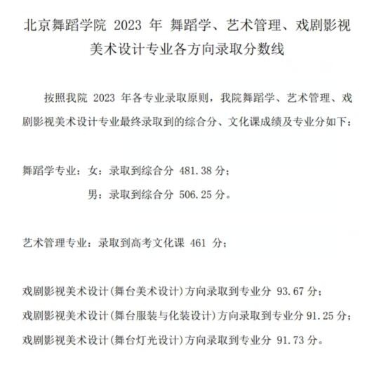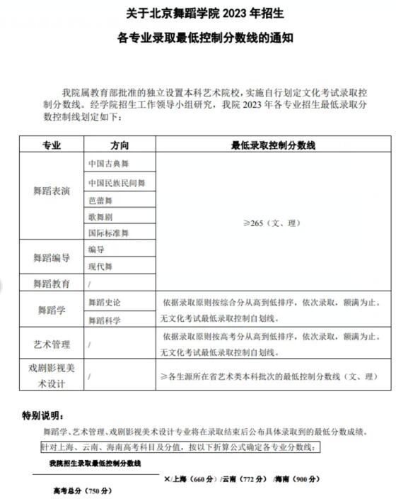 导读:2023年北京舞蹈学院录取分数线 北京舞蹈学院2022年招生各专业录取最低控制分数线 我院属教育部批准的独立设置本科艺术院校,实施自行