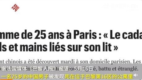 导读:中国男子死在巴黎公寓中:手脚被绑 真相曝光简直太惊人了。5月16日,据法国媒体《巴黎人报》报道,一名25岁的中国男子被发现死在位于巴黎第16区的公寓里。