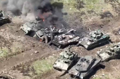 “乌克兰武装部队试图反攻时,损失了4辆豹式坦克”,俄《消息报》10日报道称,俄罗斯国防部公布了在南顿涅茨克方向被摧毁的乌克兰装甲车辆的画面,包括德国豹式坦克和美国布雷德利战车。