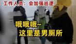 视频中,有男性游客正在小便池上厕所。他周围有女生正在排队进隔间,也有女生刚从隔间出来。
