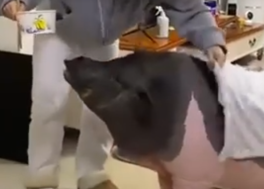 据了解,这头宠物猪的故事始于一年前。当时,女子带着女儿回到乡下,女儿对一只小猪崽情有独钟,于是女子便决定将它带回家中饲养。随着时间的推移,这只小猪在女子的精心照料下迅速成长,最终长成了现在的“巨无霸”模样。