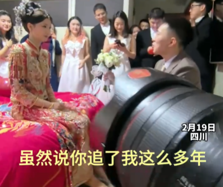 据了解,新郎在发言中表示:“虽然说你追了我这么多年,但是我们最后还是走在了一起。感谢你陪伴我走过这么多年。”这段发言一出,不仅让在场的亲朋好友惊讶不已,就连新娘也忍不住笑了起来,调侃道:“那是我的词啊!”