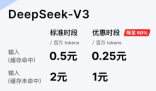 2月26日,DeepSeek宣布,DeepSeek API现实行错峰优惠定价,每日优惠时段为北京时间00:30-08:30,其余时间按照标准价格计费。在此期间,API调用价格大幅下调:DeepSeek-V3降至原价的50%,DeepSeek-R1更是低至25%。