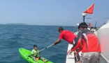 3月22日下午两点多,从事海钓服务工作的小杨,与同事、客人一起从三亚后海湾出发,前往海钓区钓鱼。在距离岸边10海里(约18.52公里)的海域,发现远处有一条绿色小船,上边有一个瘦小的身影。