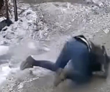 当时,这名正女子站在楼下低头看手机,突然楼上掉下大块冰溜子,重重地砸在女子后背上,女子当场被砸倒地,痛苦呻吟。