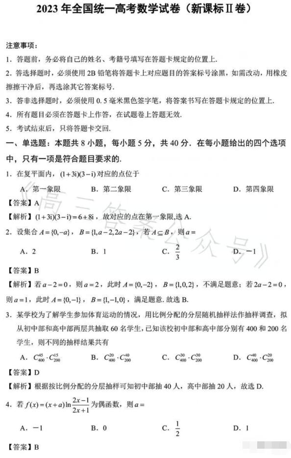 导读:2023年新课标I卷高考数学试题及答案解析汇总
