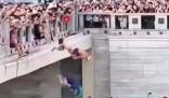 导读:近日,天津,游客赶来看天津大爷跳水,岸边的人一眼望不到头,不仅河道内配备了专业救援队,岸上还上线了打分组。再次提醒:跳水有风险,建...