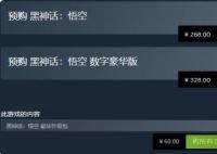 黑神话悟空steam价格介绍 标准版定价公布268元豪华版328元
